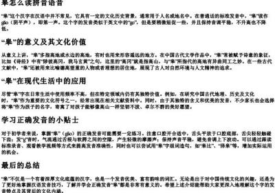 “撮”字的两种读音解析“撮”是一个多音字,在汉语中具有两种不同的读音,分别对应不同的含义和用法。正确掌握“撮”的发音,对于