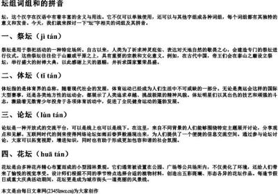 序组词组和拼音部首在汉语学习的过程中,掌握汉字的构造及其组合规律对于提高语言理解和运用能力至关重要。其中,序组词组和拼音部首是两个非常重要的概念。什么是序组词组序组词组指的是按照一定的规则和顺序将单个汉字组成词汇的过程。这个过程不仅涉及到字
