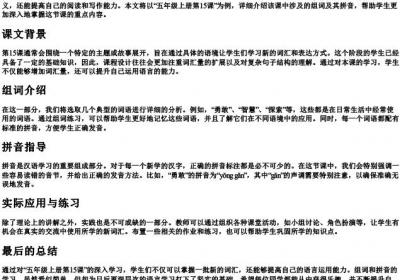 四年级上册第18课词语的拼音在小学四年级上册语文课本中,第18课包含了许多对于学生来说既新鲜又有趣的内容。本课不仅涵盖了丰富的词汇量,还通过这些词汇向学生们介绍了更多的文化背景和知识。掌握这些词语及其正确的拼音,对于提高学生的语言表达能力和