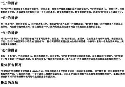 撤娇什么的拼音“撤娇”的拼音写作“chè jiāo”,其中“chè”对应汉字“撤”,意为撤回、移去;而“jiāo”则对应“娇”,通常指娇气、柔弱或是撒娇的行为。不过,“撤娇”并不是一个标准的汉语词汇,因此在正式的词典中很难找到其准确释义。它