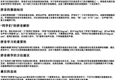 同学们的拼音怎么写的在中国,拼音是学习汉字和汉语发音的基础工具。对