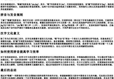 字用拼音怎么说在汉语学习的过程中,拼音作为汉字的音标书写系统,对于初学者来说是了解和学习汉字发音的基础工具。每个汉字都有其独特的发音,而这些发音可以通过拼音来表示。拼音使用拉丁字母记录汉字的读音,极大地帮助了人们学习和记忆汉字。拼音的基本构