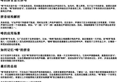 晓字的拼音怎么写“晓”字是现代汉语中极为常用的汉字之一,其拼音的准确书写既是语言学习的基础内容,也蕴含着汉字语音演变的有趣线索。本文将从“晓”字的拼音写法、发音原理、文化内涵和常见应用场景四个方面展开解析,帮助读者全面掌握这个字的语言价值