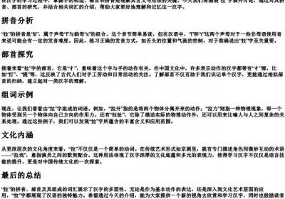 竖组词拼音部首汉字作为世界上最古老的文字之一,其构造复杂而有趣。在汉字的学习过程中,“竖组词拼音部首”这一概念对于理解汉字的结构和意义具有重要意义。所谓“竖组词”,指的是通过竖向组合不同的部首或字根形成新的汉字;而“拼音”则是指汉字的发音系