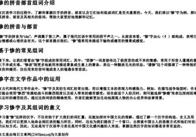 舍拼音部首组词的基础知识在学习汉字的过程中,了解汉字的构成部分对于提高识字效率和理解汉字的意义至关重要。汉字由不同的部首和偏旁组成,这些元素不仅有助于我们记忆汉字的形状,还能帮助我们推测其意义或发音。本文将围绕“