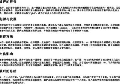 披萨的拼音披萨,在汉语中的拼音为“pī sà”,是一种源自意大利的美食,以其独特的风味和多样的配料组合在全球范围内广受欢迎。无论是在家庭聚会、朋友聚餐还是日常快餐选择中,披萨都占据着重要的一席之地。其名称在不同语言和地区有着不同的发音方式,