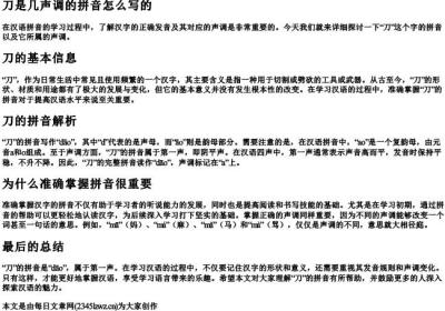 咽用拼音怎么拼“咽”这个字在汉语中是一个多音字,因此它的拼音并不是唯一的,而是根据具体语境和词义的不同而有所变化。通常情况下,“咽”主要有三个读音:yān、yàn 和 yè。读音 yān当“咽”表示人体部位时,它的拼音是 yān,指的是口腔
