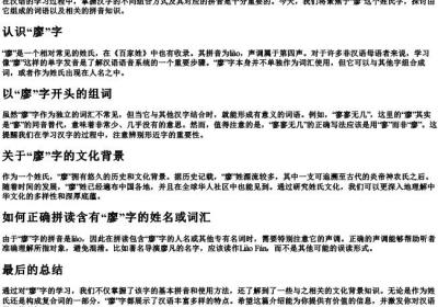 覃字怎么读拼音“覃”这个字在汉语中并不是一个非常常见的字,但其独特的意义和发音使得它在一些特定的名字或者词语中占有重要的位置。对于许多人来说,“覃”字的正确读音可能并不那么直观。接下来,我们将详细介绍这个字的拼音以及相关的文化背景。基本拼音
