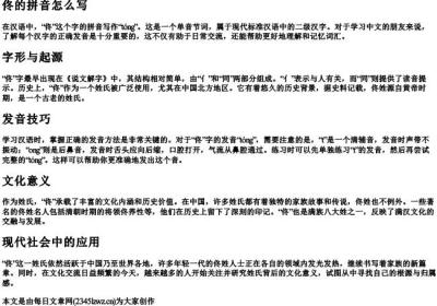 鄢的拼音和组词“鄢”是一个较为少见的汉字,它的拼音是“yān”。在汉语中,“鄢”通常用于地名、姓氏以及一些特定的历史或文学用语中。由于其使用频率较低,很多人对这个字并不熟悉。作为姓氏的“鄢”“鄢”可以作为一个姓氏出现,虽然并不常见,但在《百