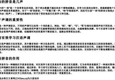 字拼音是几声啊:引言汉语作为一种拥有丰富语音变化的语言,其拼音的四声对于正确发音和理解至关重要。了解一个汉字的拼音属于哪一声,不仅能够帮助学习者更准确地发音,还能加深对词汇