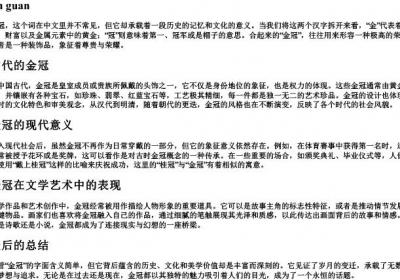 jin guan金冠,这个词在中文里并不常见,但它却承载着一段历史的记忆和文化的意义。当我们将这两个汉字拆开来看,“金”代表着珍贵、财