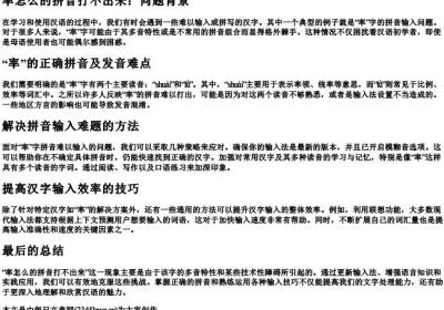 什么字是拼音打不出来的在日常使用计算机或手机输入法时,我们经常会遇到一些特殊字符或者生僻字,这些字可能无法通过常规的拼音输入法直接打出。这种现象不仅体现了汉字文化的博大精深,也反映了现代技术在处理语言多样性方面的局限性。生僻字与拼音输入法的