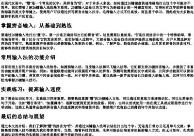 什么用拼音怎么打出来拼音输入法是中国大陆以及海外华人社区中最常用的中文输入方式之一。它通过将汉字的发音转换为对应的拉丁字母来实现文字输入,极大地简化了中文字符在电子设备上的输入过程。无论是电脑、智能手机还是平板电脑,拼音输入法都扮演着不可或