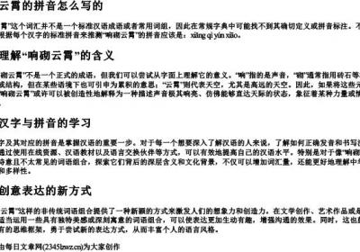 响砌云霄的拼音怎么写的“响砌云霄”这个词汇并不是一个标准汉语成语或者常用词组,因此在常规字典中可能找不到其确切定义或拼音标注。不过,我们可以根据每个汉字的标准拼音来推测“响砌云霄”的拼音应该是:xiǎng qì yún xiāo。深入理解“