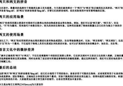 两只的拼音拼写:Er Liang在汉语拼音系统中,“两只”被拼写为“Er Liang”。这个简单的词汇组合